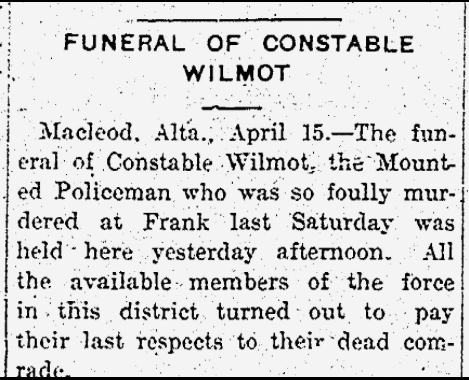 Constable Willmett was originally a house painter and came to Canada in early 1907. He was murdered by a burglar while on night patrol in the town of Frank, Alberta. It took over three years of undercover work to find out who was responsible. Constable Willmett is buried in the Union Cemetery, Fort MacLeod, Alberta.