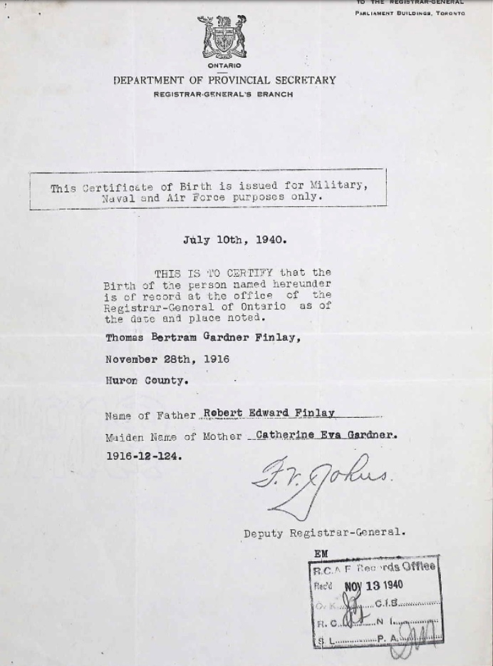 Digital gallery of Flight Sergeant Thomas Bertram Gardner Finlay