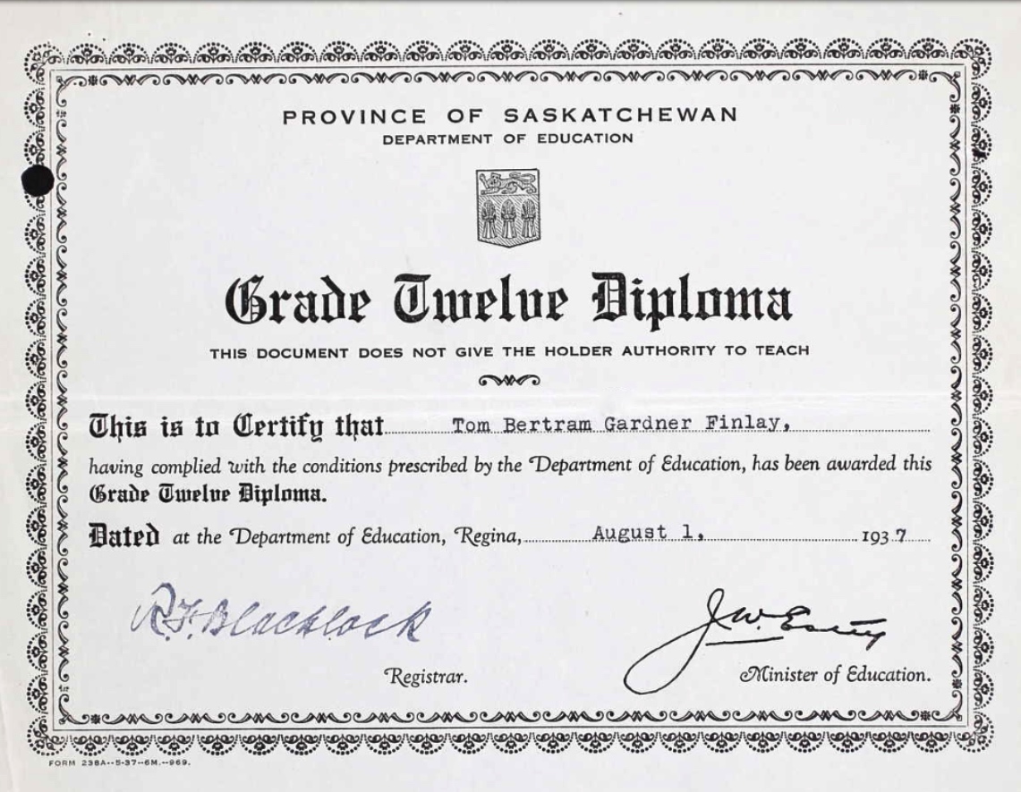 Son of Robert E. Finlay and Eva Finlay, of Saskatoon, Saskatchewan, Canada.