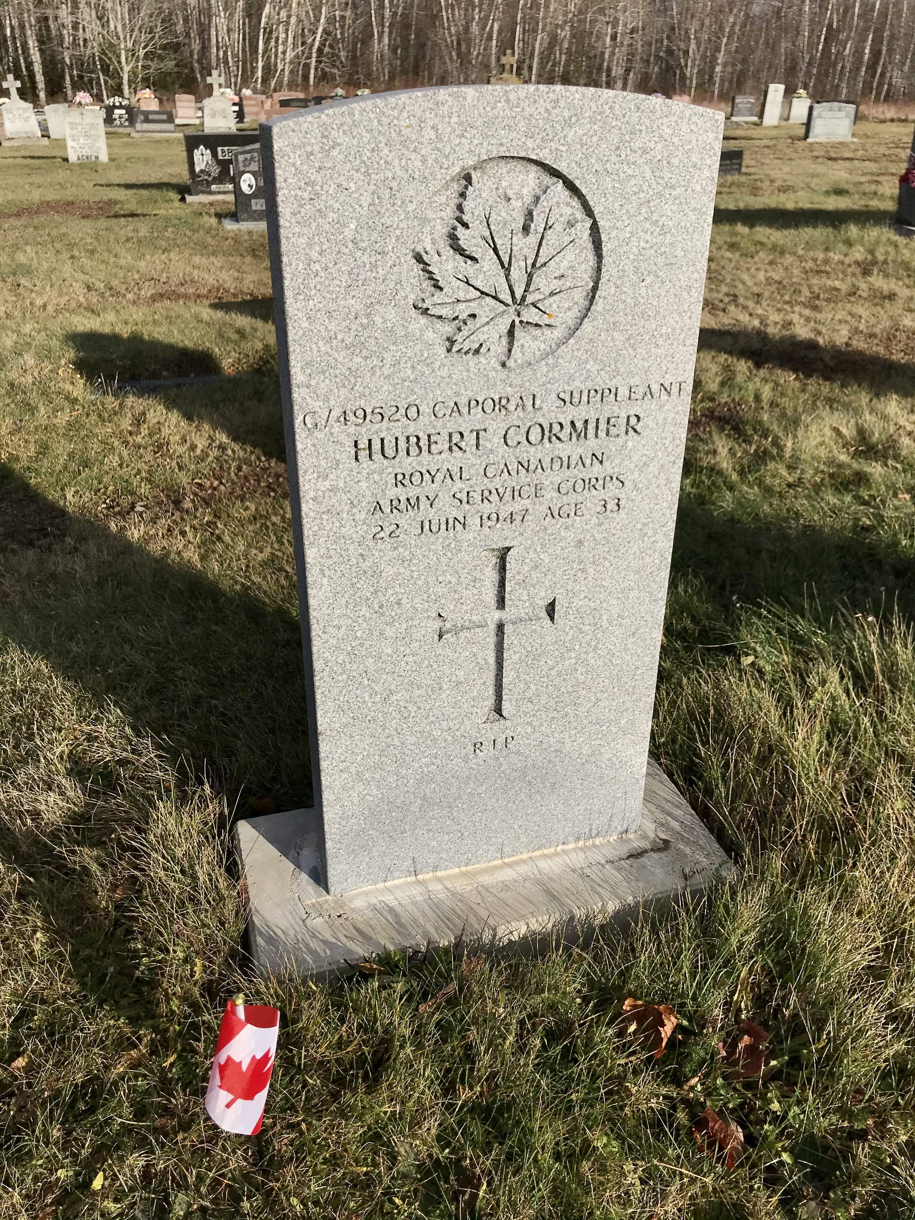 Brother of Private Augustin Joseph Cormier, who died while serving with the Royal Canadian Ordnance Corps and Fusilier Alfred Joseph Cormier, who died while serving with the Saint John Fusiliers (M.G.).