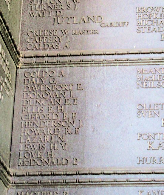 On 19 November 1917, the Jutland was en route from Bilbao, Spain, to Middlesbrough, England, when she was torpedoed by UC-79 18 nautical miles (21 miles/33 km) north-north-east of Ushant, Finistère, France, taking the lives of the 26 crew members and her captain, position 48°46'N/04°55'W.