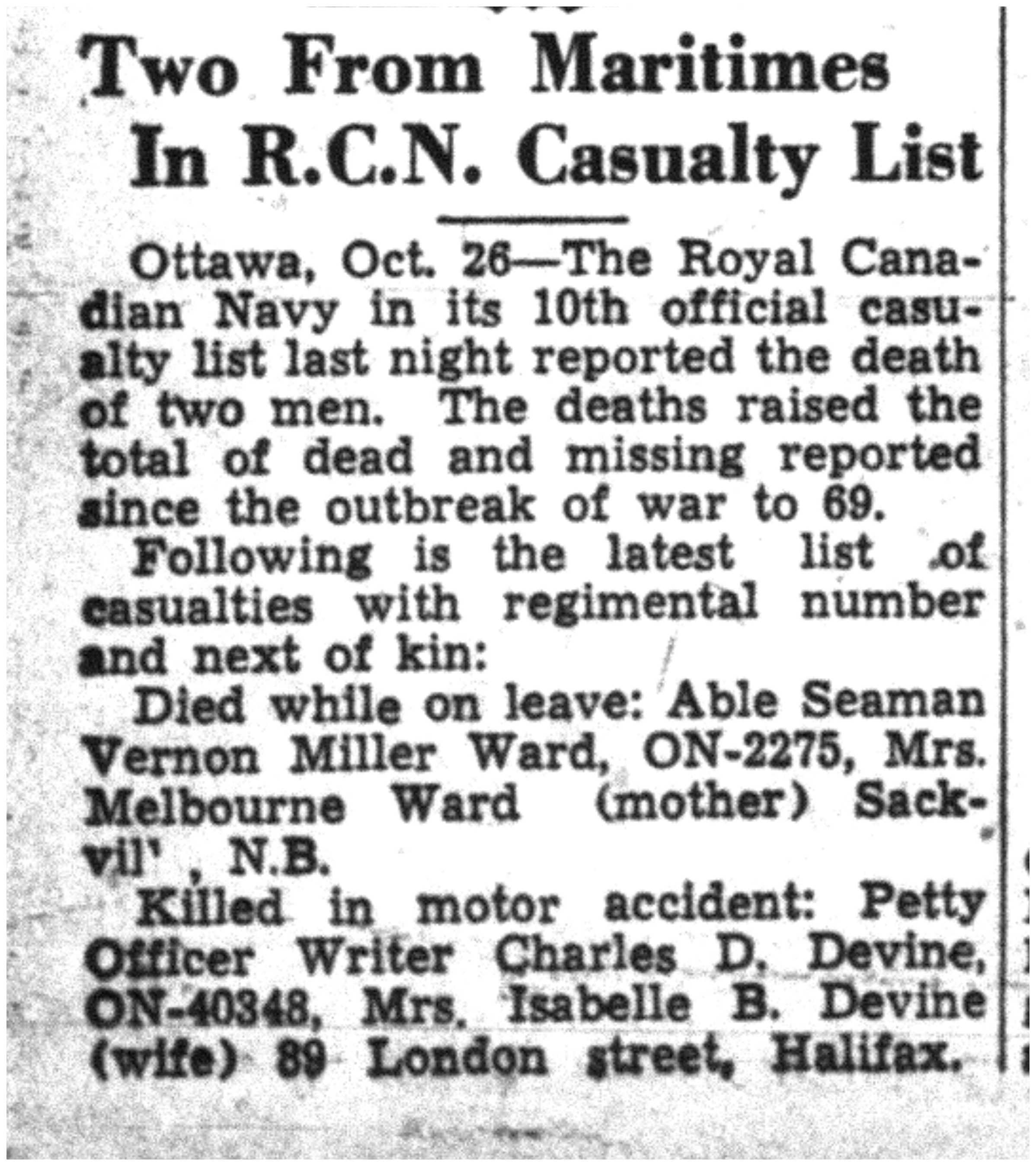 Death: October 20, 1940 Hunters Mountain, Nova Scotia