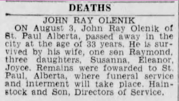 Son of Mr. and Mrs. Paul Olenik, of Flat Lake; husband of Mary Olenik, of St. Paul.