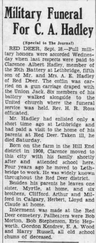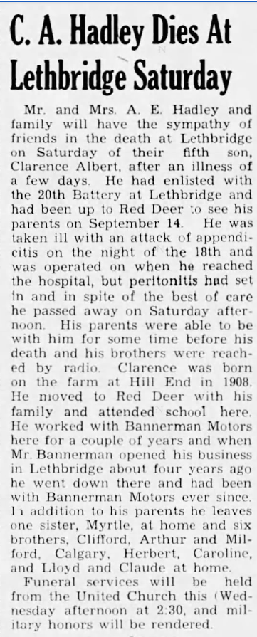 Son of Mr. and Mrs. H. A. Hadley, of Red Deer.