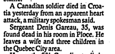 Canadian Contingent Support Unit, United Nations Protection Force (UNPROFOR)