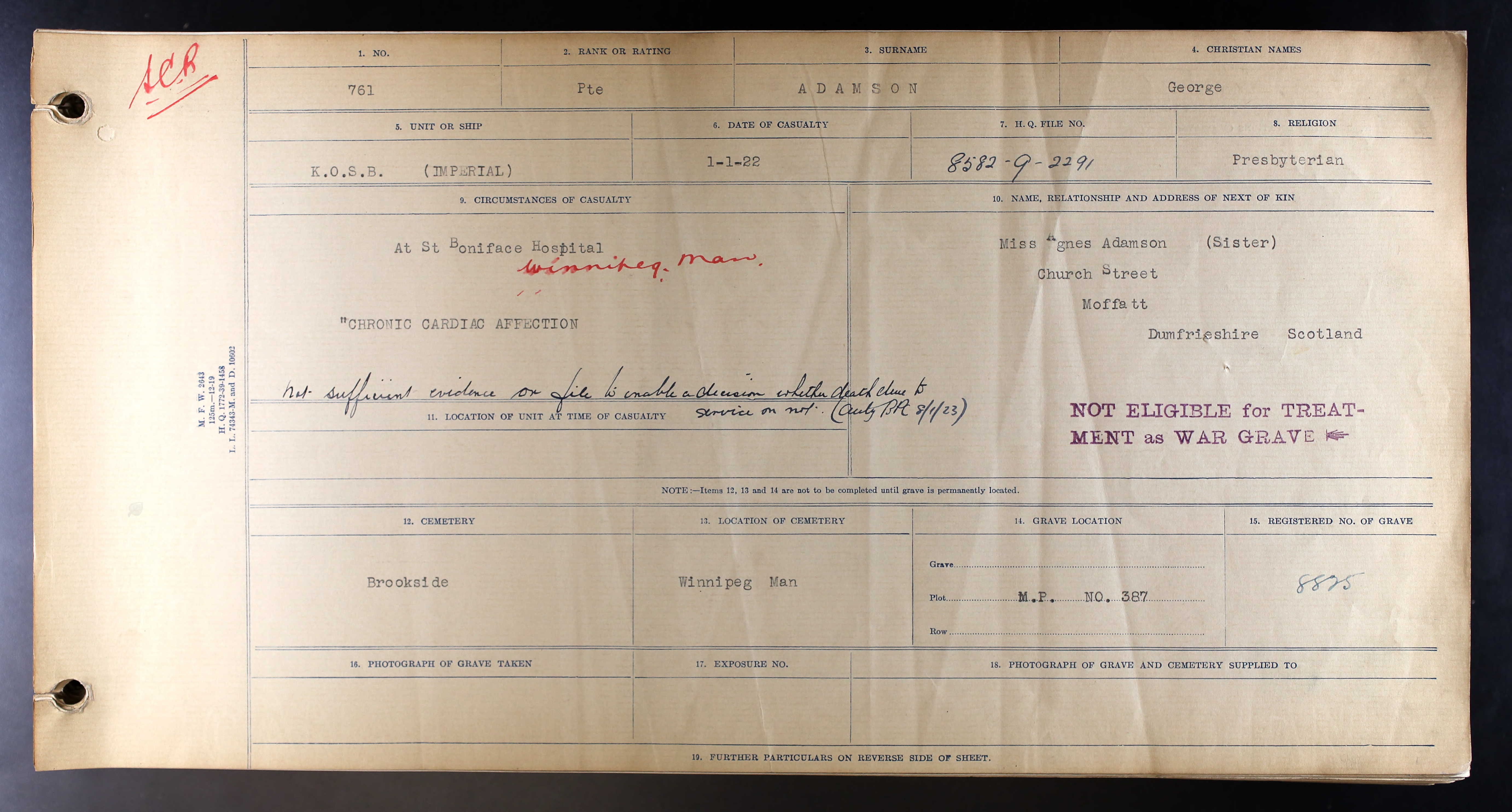 WINNIPEG (BROOKSIDE) CEMETERY Manitoba, Canada