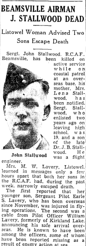 Son of Dr. J. B. Stallwood and A. Lena Stallwood, of Beamsville, Ontario.