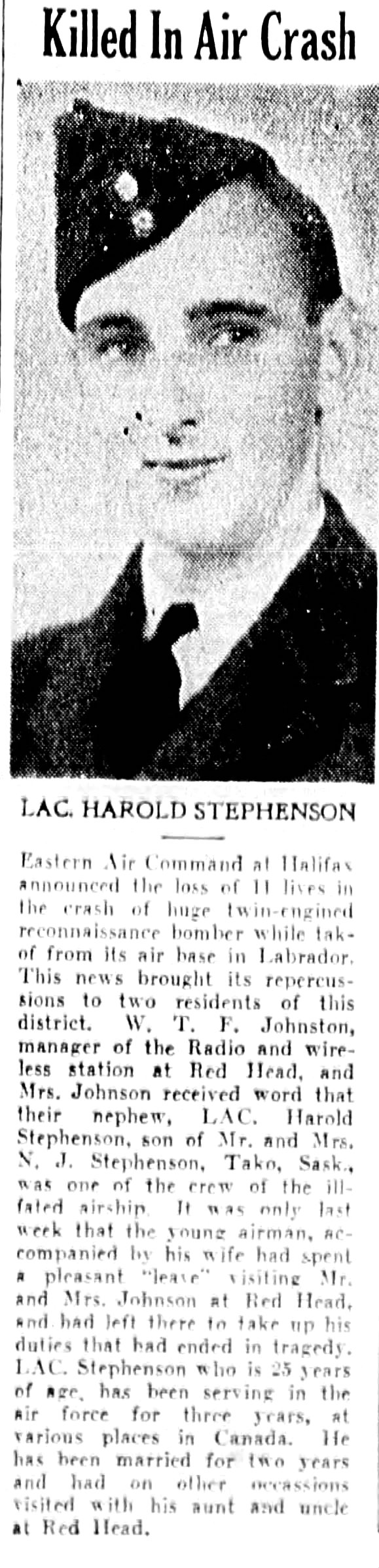 Son of Norman John and Ethel May Stephenson, of Tako, Saskatchewan; husband of Mary U. Stephenson, of Wilkie, Saskatchewan.