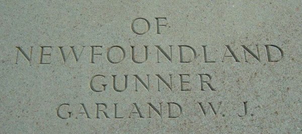 Gunner Garland was born in Newfoundland. He is also commemorated on the Brookwood Memorial.