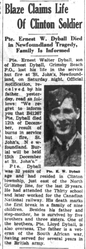 Son of Mr. and Mrs. Ernest Walter Dyball, of Grimsby Beach, Ontario.