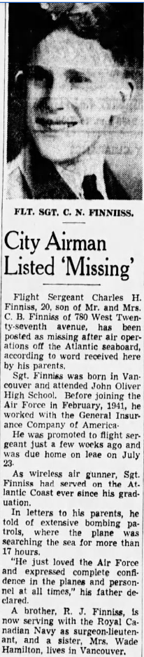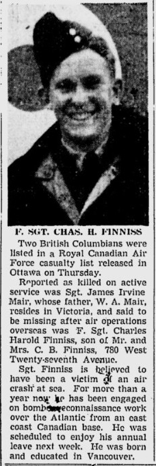 Son of Charles Bryson Finniss and Hallie May Finniss, of Vancouver, British Columbia.