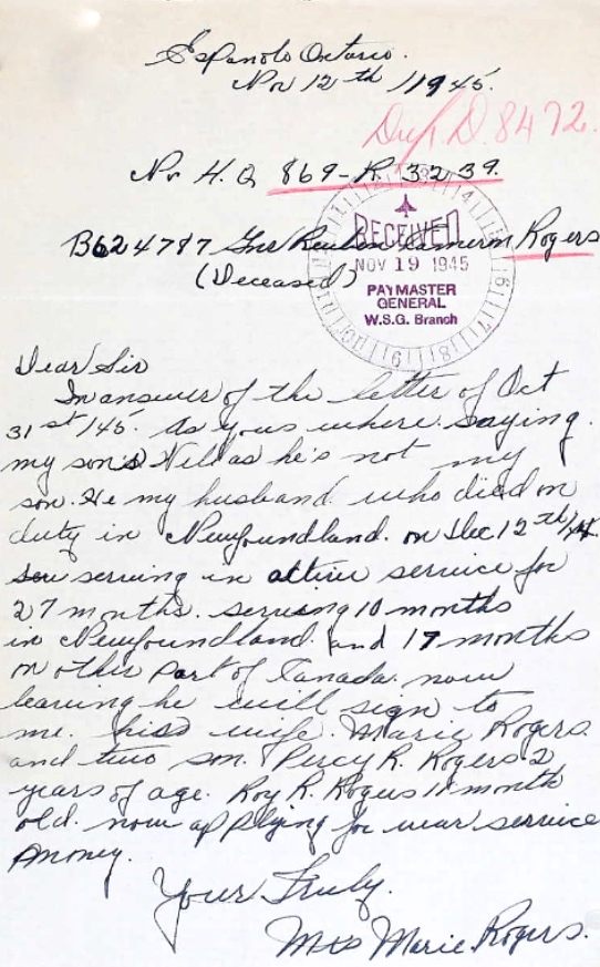Son of Mr. and Mrs. Percy Rogers, of Espanola, Ontario; husband of Marie B. Rogers, of Espanola.