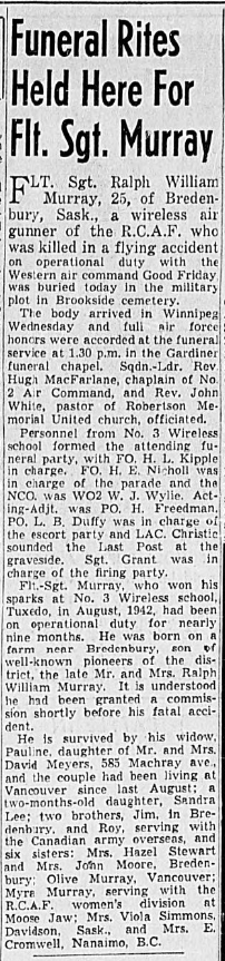 Son of Walter T. Murray and Rebecca Murray; husband of Pauline Murray, of Winnipeg.