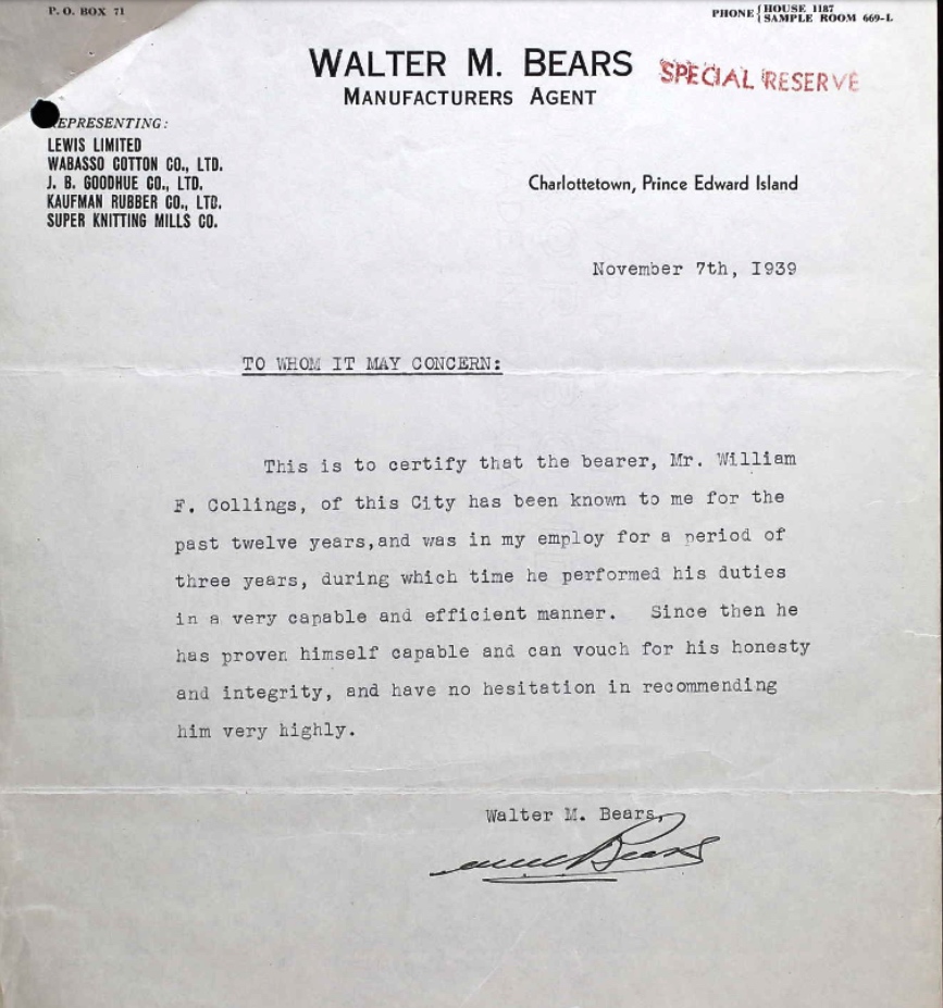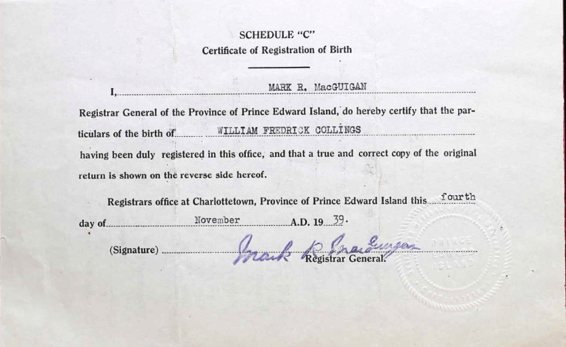 Son of John Alexander and Edith H. Collings, of Charlottetown, Prince Edward Island.