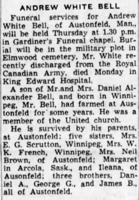 Son of Daniel A. Bell and Margaret Bell, of Ostenfeld.