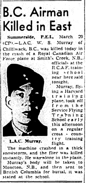 Son of Frederick A. Murray and Hulda J. Murray, of Chilliwack, British Columbia.