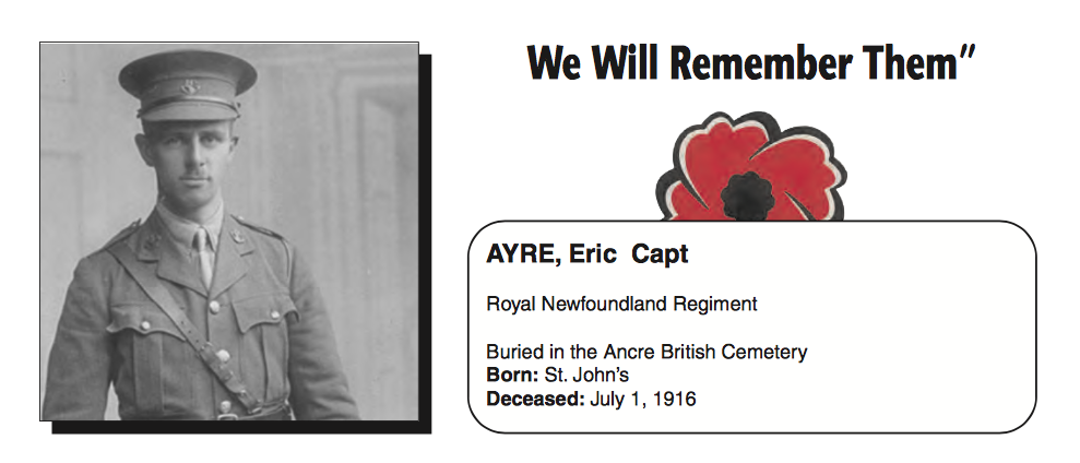 Brother of Captain Bernard Pitts Ayre who died on July 1, 1916 while serving with the Norfolk Regiment (British Expeditionary Force).