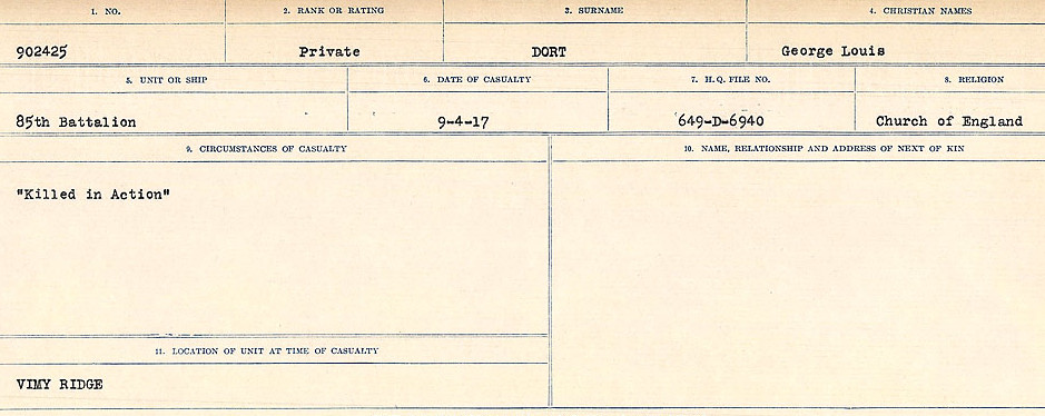 Son of George L. Dort and Martha Jane Dort, of Canso, Nova Scotia.