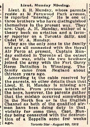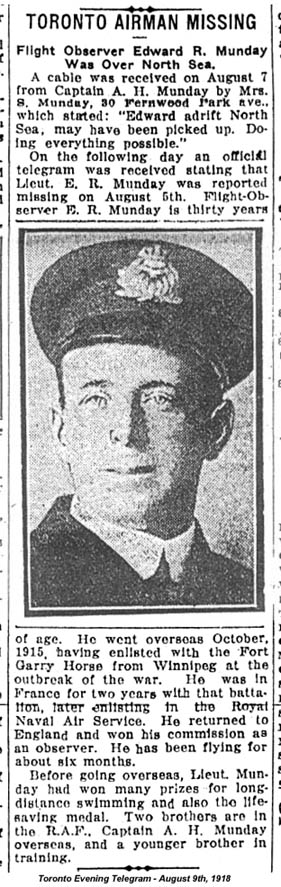 Son of Edward James and Sarah Ann Munday, of Toronto, Ontario.