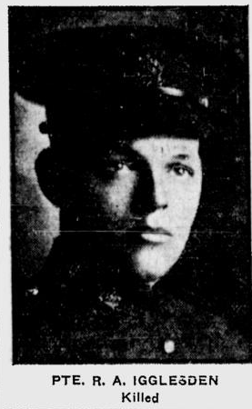 Son of Robert W. Igglesden, and Mary E. Igglesden, of "The Beacon", Chilton Ave., Kearsney, Kent.