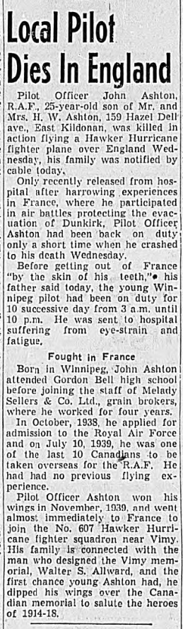 Son of Harry W. and Frances W. Ashton, of East Kildonan, Manitoba, Canada.