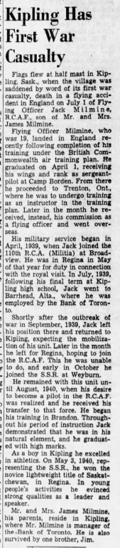 Digital gallery of Pilot Officer John Melvin Milmine