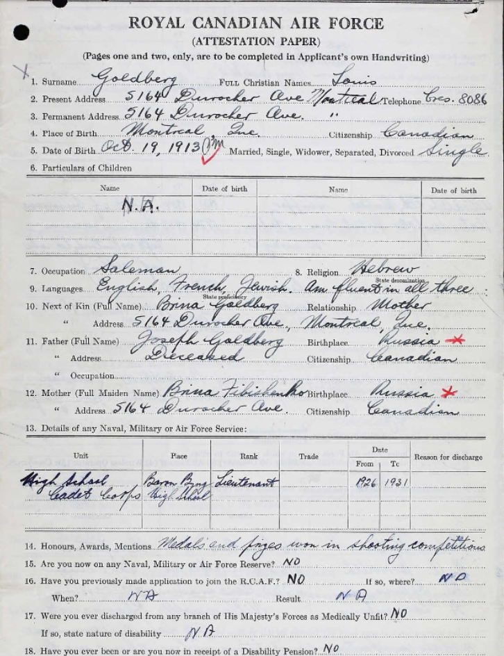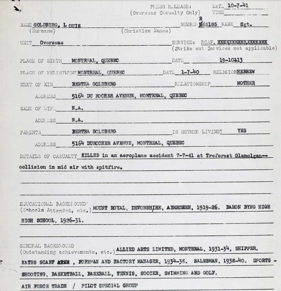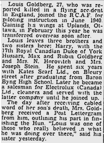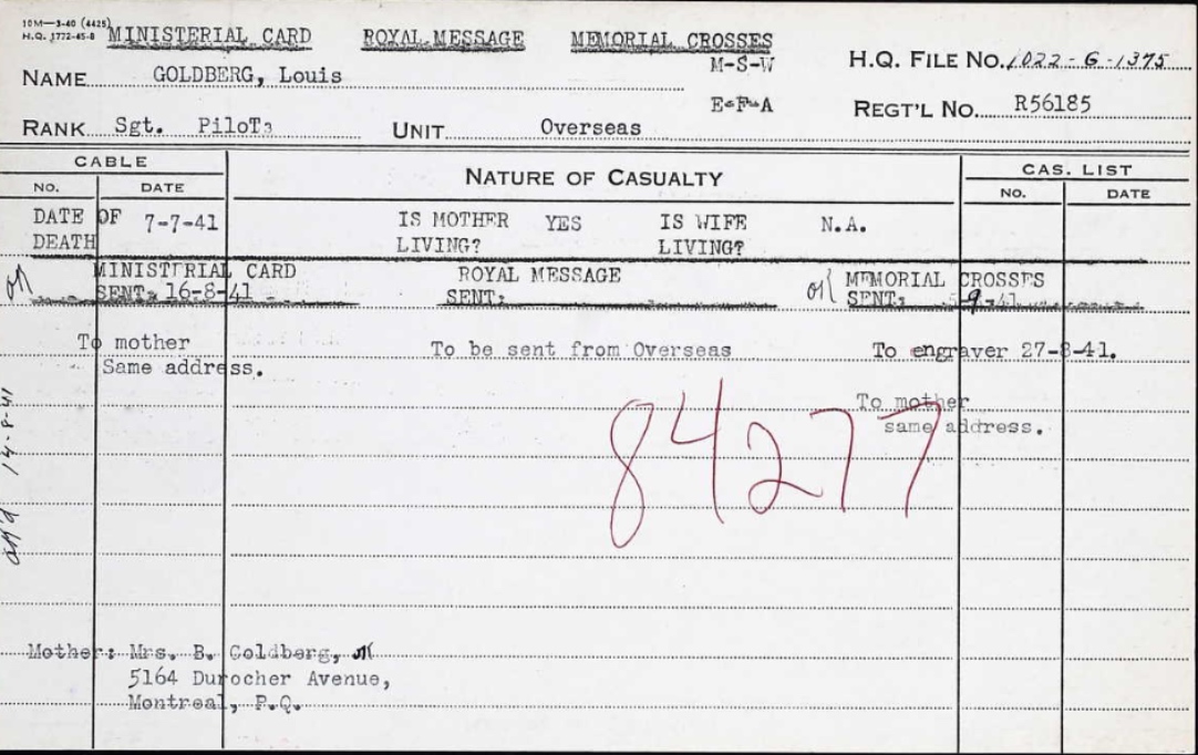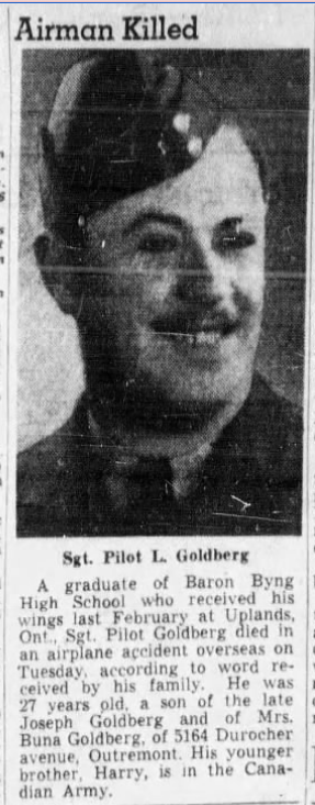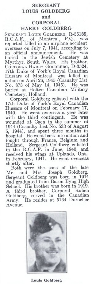 Son of late Joseph and Binna (née Fibishenko) Goldberg, of Montreal, Quebec. His brother Harry also died on service.