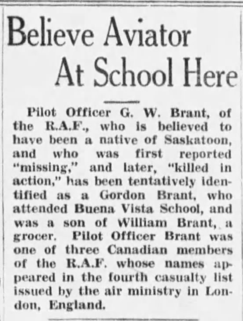 Son of The Revd. William John Brant and May Elizabeth Brant, of The Rectory, Meadow Lake, Saskatchewan, Canada.
