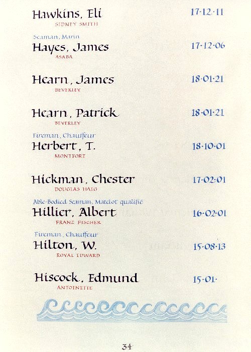 Page 34 of the Merchant Navy Book of Remembrance.