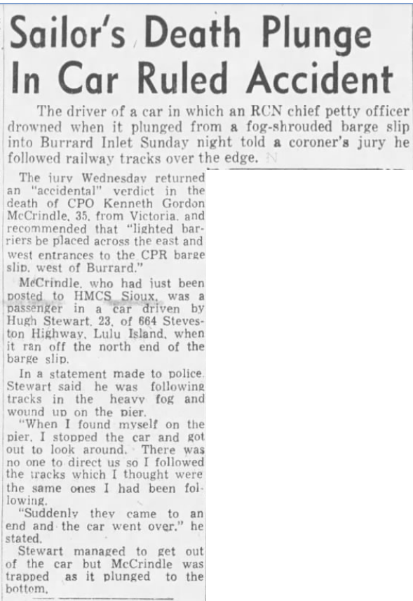 Son of John and Matilda McCrindle of Victoria, British Columbia. Husband of Vera McCrindle. Father of Marcia McCrindle of Victoria, British Columbia.