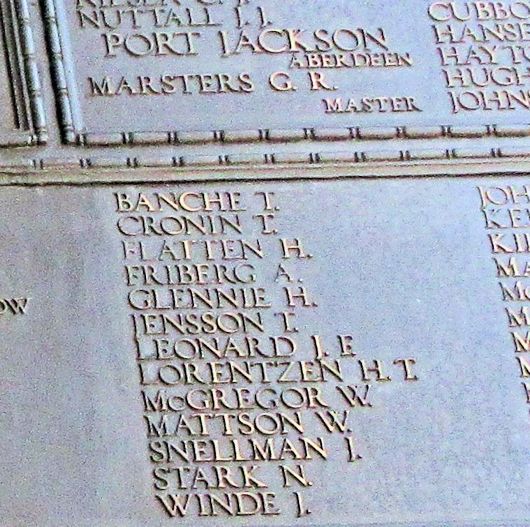 On 28 April 1917, this four-masted barque was en route from Buenos Aires, Argentina, to Cork, Ireland, when she was torpedoed by U-67 180 miles (290 km) north-west of Fasnet, Ireland, and sank, position 51°00'N/14°02'W. The captain and 13 crew members lost their lives.