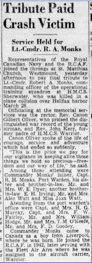 Son of Robert Henry and Helen (nee Armitt) Monks of Montreal, Quebec. Husband of Elizabeth Jane (nee Irving)Monks of Ottawa, Ontario. Father of Betty Monks. Brother of Marjorie.