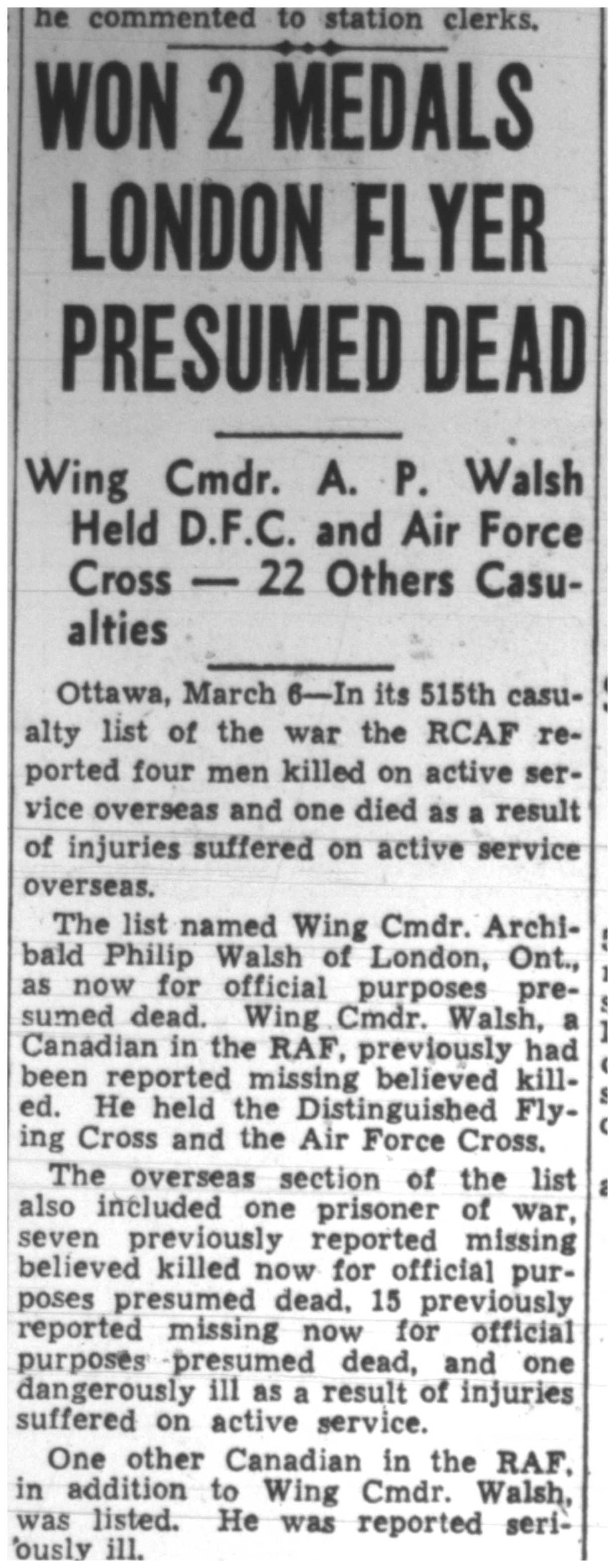 Digital gallery of Wing Commander Archibald Philip Walsh