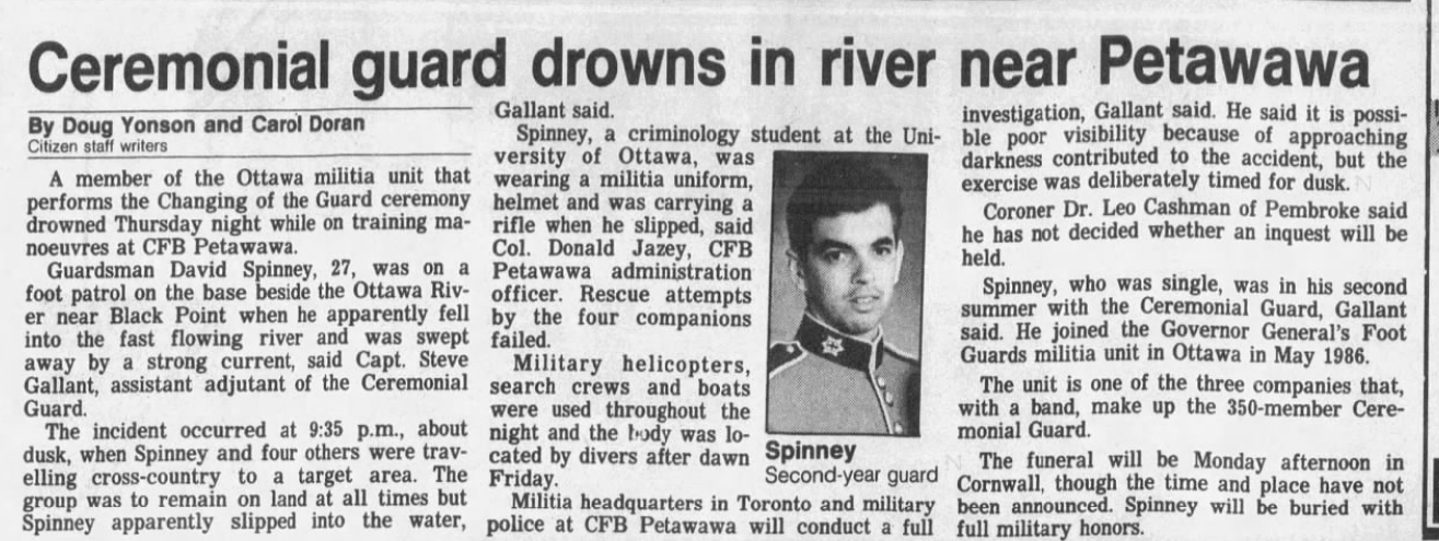 Commemorated on the Guardsman David G. Spinney Plaque.