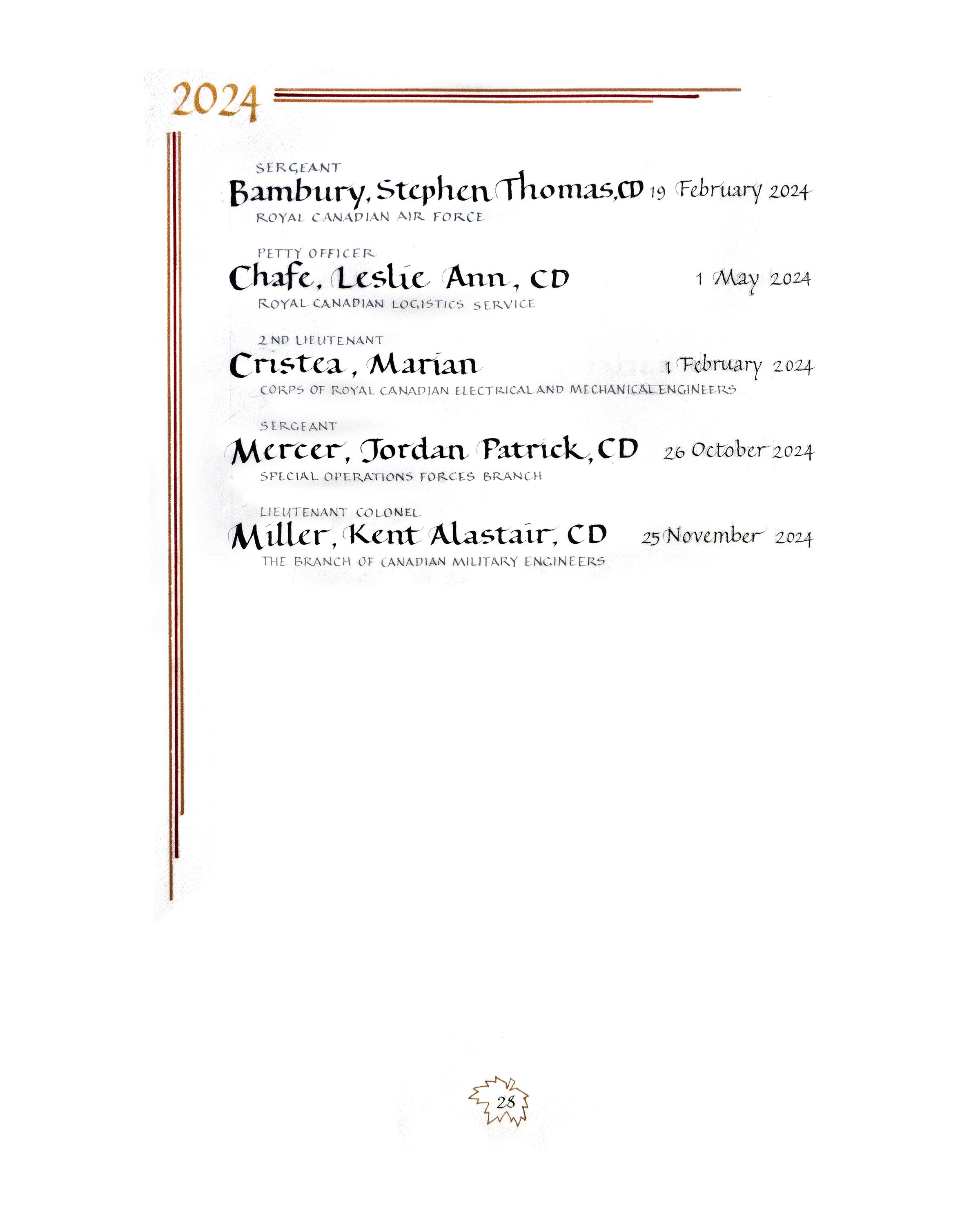 Page 28 of the In the Service of Canada, Vol. II (2015 – ) Book of Remembrance.