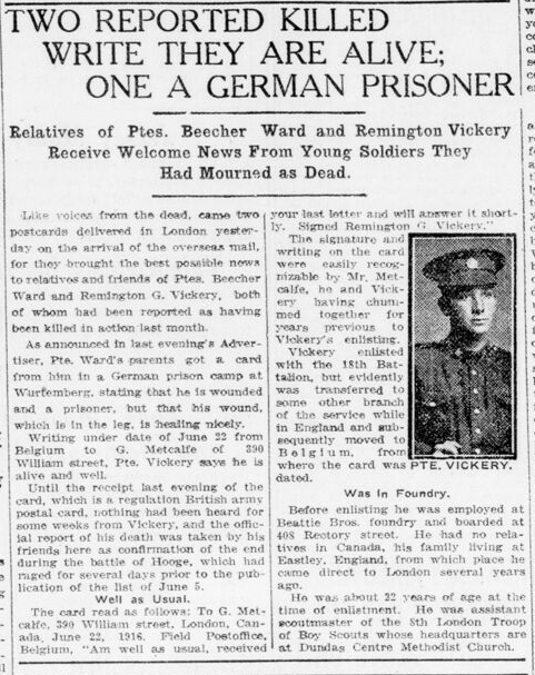 Son of John and Alice Vickery, of Eastleigh, Hants, England.
