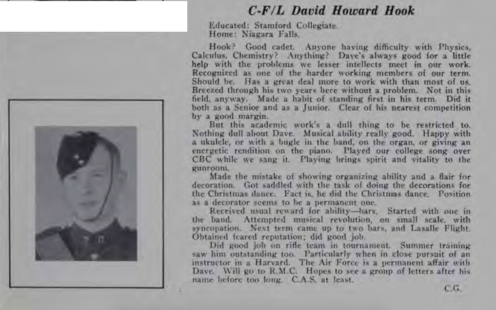 Son of Sidney and Ethel Martha (nee Sargent) of Niagara Falls, Ontario. Spouse of Merle Marie (nee Chamberlain) Hook and father of Norman and Sandra of Moose Jaw, Saskatchewan.