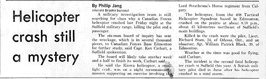 On 2 December 1993, 408 Tactical Helicopter Squadron held a ceremony dedicating a CH-136 Kiowa helicopter at Sir Winston Churchill Memorial Park in 18 Wing Edmonton. The park is a memorial to those members of the Canadian Forces who gave given their lives while stationed at 18 Wing. One of the main features of the park is a central fountain area where the names of these members are inscribed on a series of plaques.