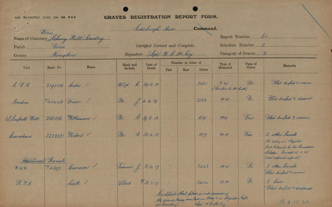 FORRES (CLUNY HILL) CEMETERY Moray, United Kingdom