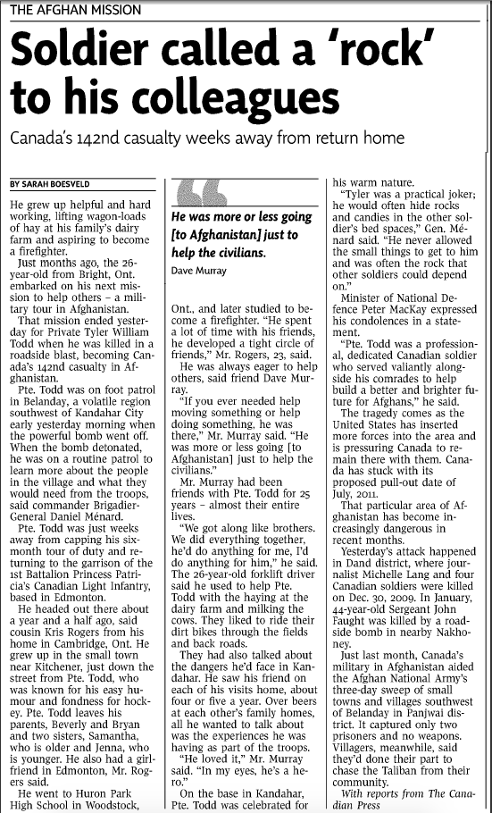 Son of Bryan and Beverley Anne (nee Doan) Todd of Bright, Ontario. Brother of Samantha and Jenna Anne. Grandson of Jackie Grimes.