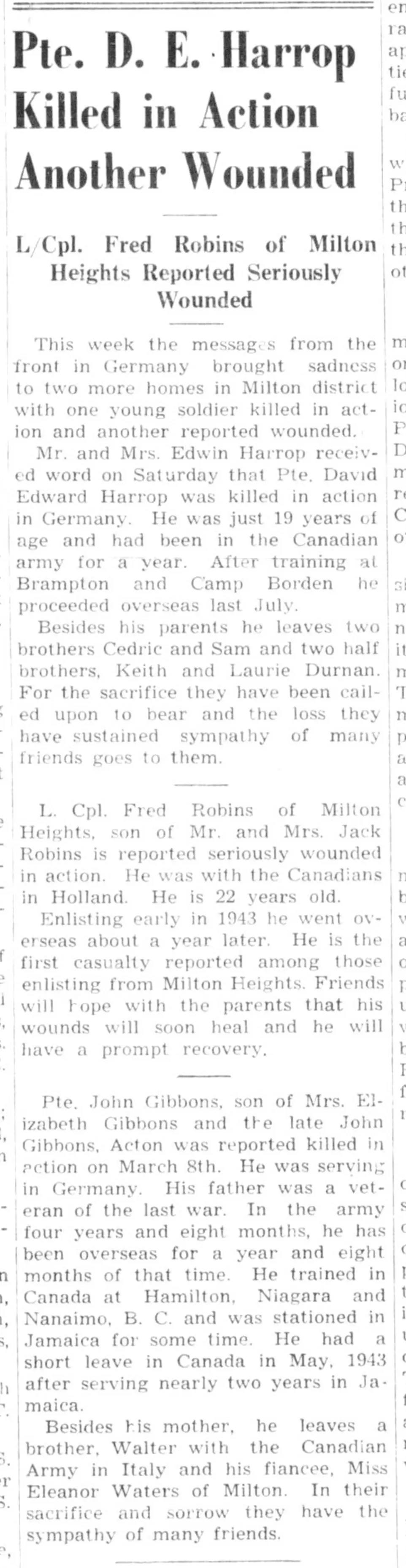 Son of Edwin and Maude Harrop, of Milton, Ontario.
