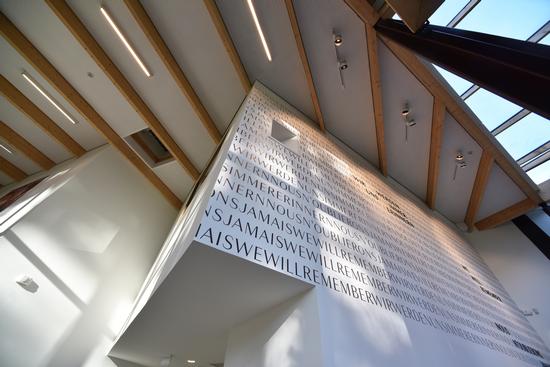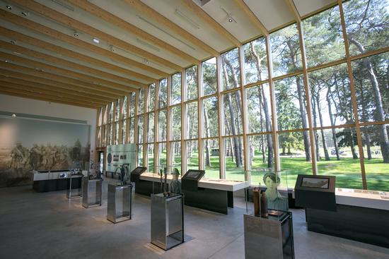 The Visitor Education Centre’s wall of windows keeps visitors connected to the site as they explore the We Will Remember exhibit.