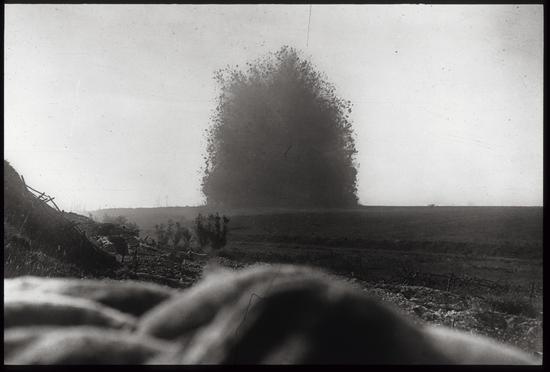The explosion of a mine under the Hawthorn Redout, the minutes before zero, before the assault at Beaumont-Hamel. Photo: Imperial War Museum, Q 754