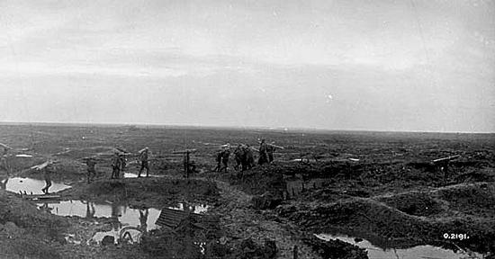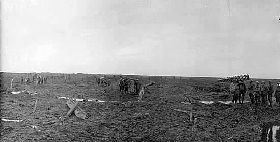 Personnel of the 16th Canadian Machine Gun Company holding the line in shell holes during the Battle of Passchendaele. Photo: William Rider-Rider / Library and Archives Canada / PA-002162