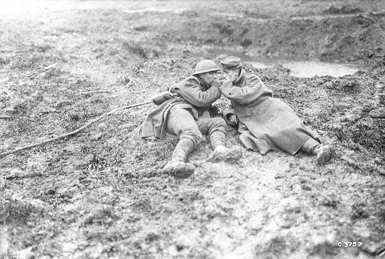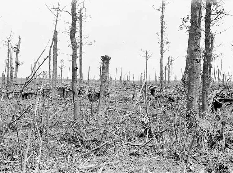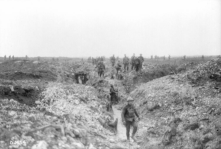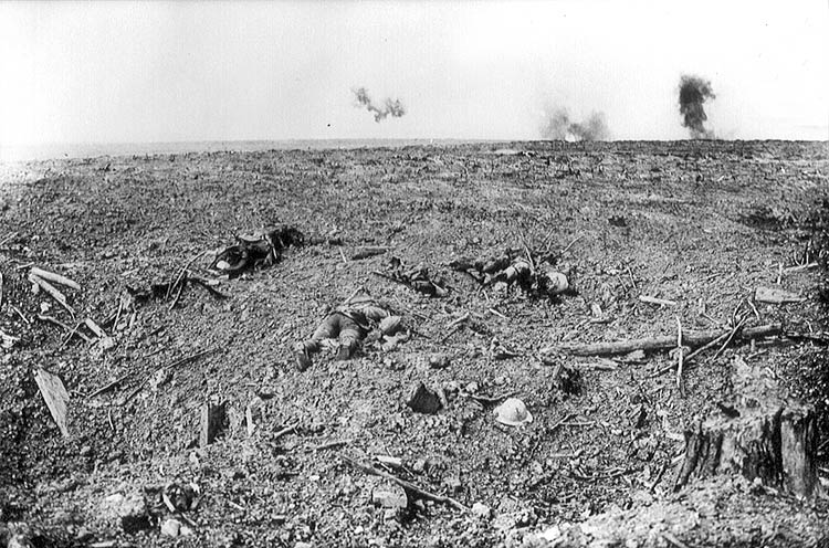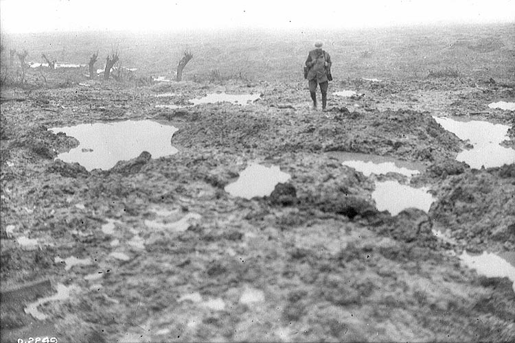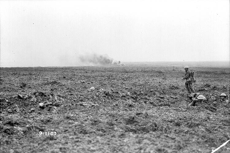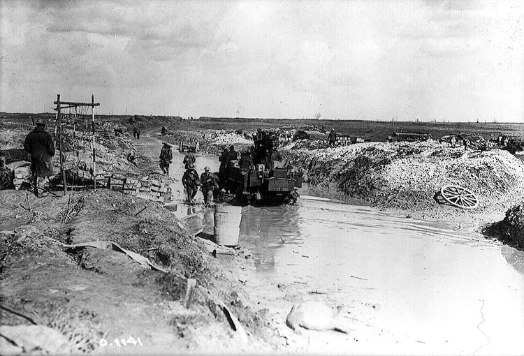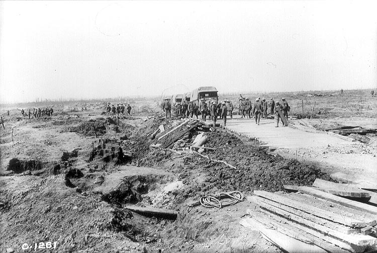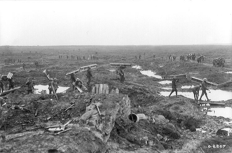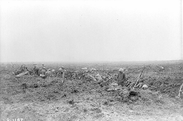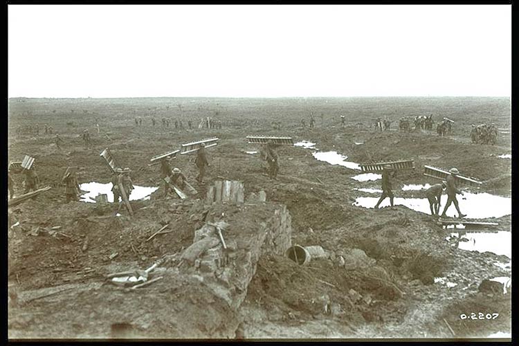 Bodies of the fallen lay in the mud after paying the ultimate price...(The battlefield after a Canadian charge. Library and Archives Canada.)