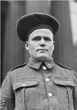 On 8 August 1918, the opening day of the attack by the Canadian Corps at Amiens, the advance of Corporal Good’s company was checked by fire from three German machine guns emplaced in Hangard Wood, near Villers-Bretonneux. Good charged the position alone, killing several of the enemy and making prisoners of the remaining defenders. Later that day, when the advance had penetrated deep into the German lines, he came upon an enemy battery of 5.9-inch guns, which was in action. Collecting three men from his section, Good assaulted the battery in the face of point-blank fire and captured the crews of all three guns.