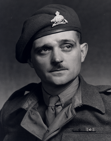 On 14th December, 1943, Captain Triquet’s company of the Royal 22e Regiment with the support of a squadron of a Canadian Armoured Regiment was given the task of crossing the gully and securing Casa Berardi. Difficulties were encountered from the outset. The gully was held in strength and on approaching it the force came under extremely heavy fire from machine guns and mortars. All the company officers and 50 per cent of the men were killed or wounded. Showing superb contempt for the enemy Captain Triquet went round reorganizing the remainder and encouraging them with the words ‘Never mind them, they can’t shoot’. Finally when enemy infiltration was observed on all sides shouting ‘There are enemy in front of us, behind us and on our flanks, there is only one safe place – that is on the objective’ he dashed forward and with his men following him, broke through the enemy resistance. In this action four tanks were destroyed and several enemy machine gun posts silenced.