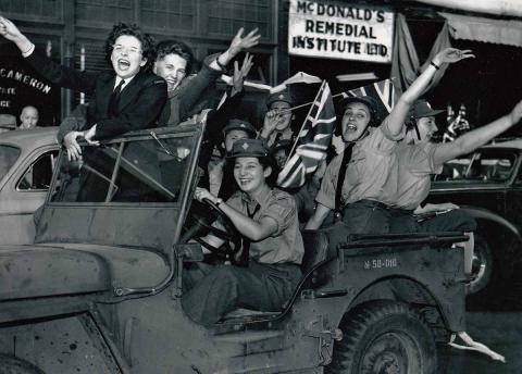 On 8 May 1945, Victory in Europe (V-E) Day was declared. The war in Europe had concluded, but the conflict in Asia and the Pacific continued to rage on. 14 August 1945 began as a regular day for Vicky. She was driving through downtown Vancouver stopped at a red light, as she was delivering various messages throughout the city. Little did she know that the Second World War was about to end. “She was downtown and couldn’t figure what all the cheering and noise was about,” says Rob. “A couple of people ran by and shouted that the war was over.”