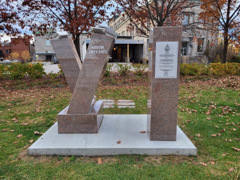 The United Jewish Appeal Federation War Memorial was erected on November 11, 2011, by the United Jewish Appeal Federation of Greater Montreal. The black granite memorial includes the symbols of the Canadian Army, Navy and Air Force, and two stars of David. It was created by L. Berson & Son Monuments and funded by donations from local residents and corporate contributions.