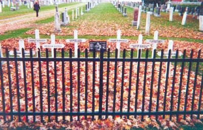 Eight crosses were erected in memory of the Saint-Denis Patriots killed at the battle of Saint-Denis. They were erected in the parish cemetery by the Comité de la Fête des Patriotes de Saint-Charles et Saint-Denis, with the contribution of the Patriotes du Pays, and unveiled on June 24, 1988.